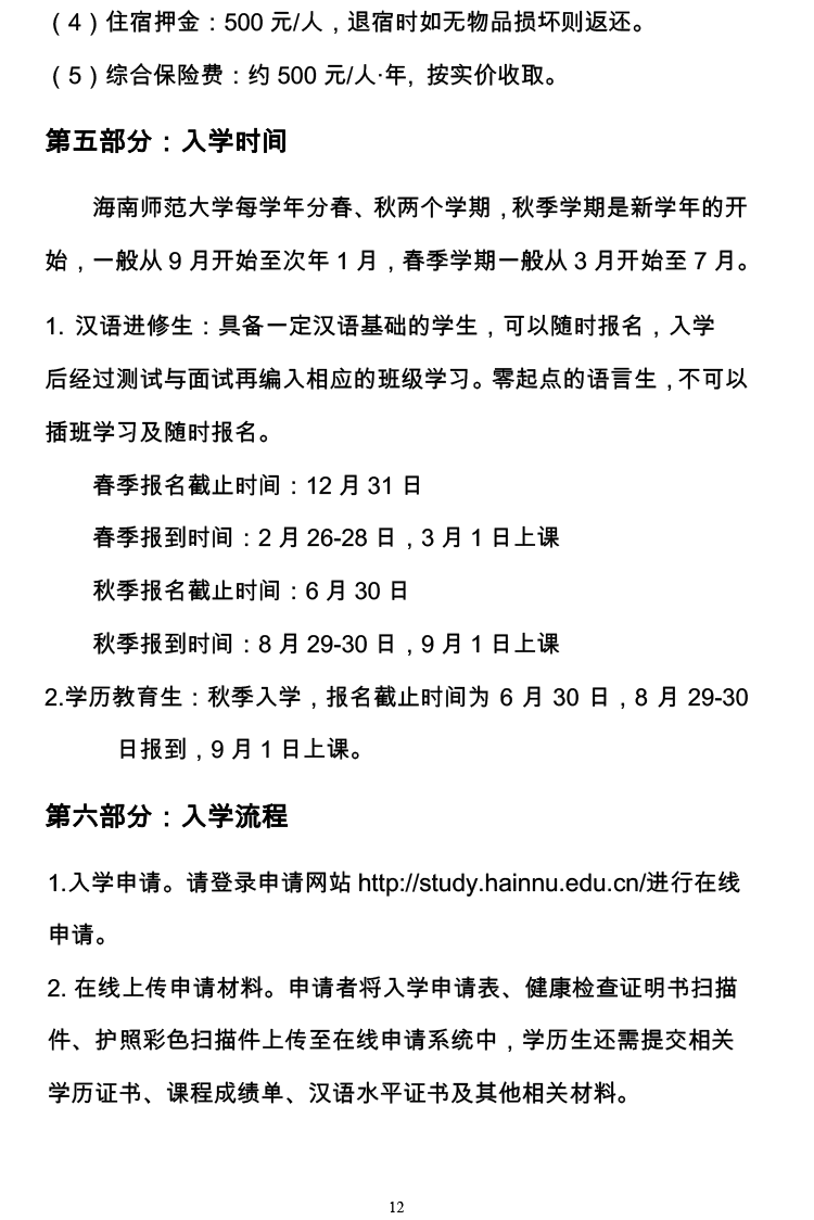 2021年海南师范大学国际学生招生简章