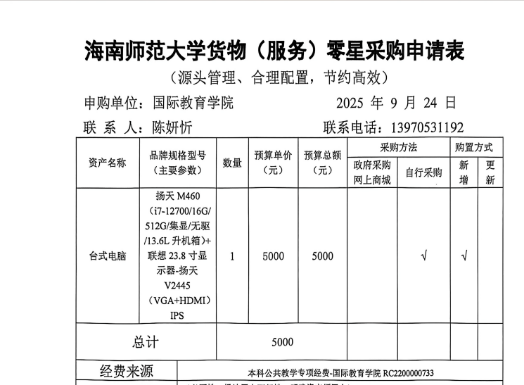 新副书记到岗日常行政工作需要,申请购置台式电脑。经费来源为RC2200000733。