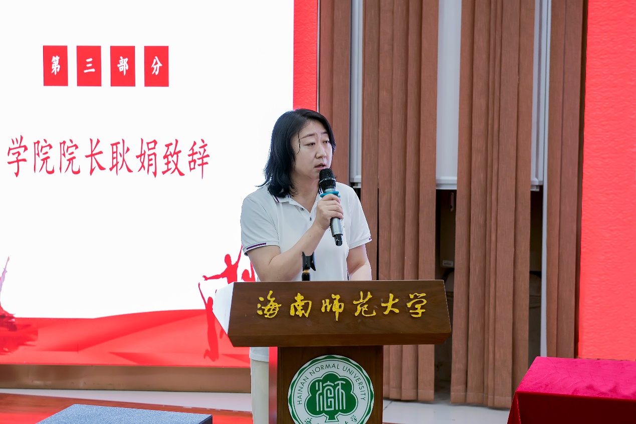耿娟院长在典礼上致辞,对2025级新生表示热烈欢迎。她指出,国际教育学院肩负着推动中华文化走向世界、促进中外文明交流互鉴的光荣使命,并对新生提出三点期望:一是拥抱变化,成为主动学习者;二是开阔胸襟,成为胸怀世界的桥梁;三是锤炼品格,成为有担当的奋斗者。她鼓励同学们珍惜大学时光,以青春为笔,书写属于自己的精彩故事。