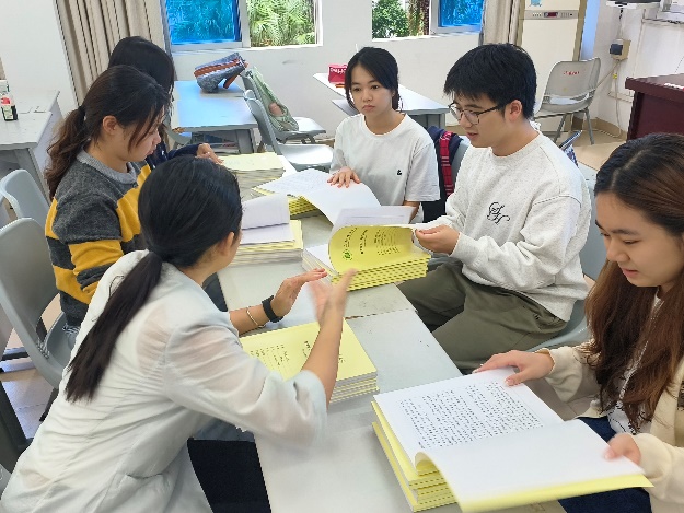 图1:张文香老师检查海南医科大学实习生的实习进展