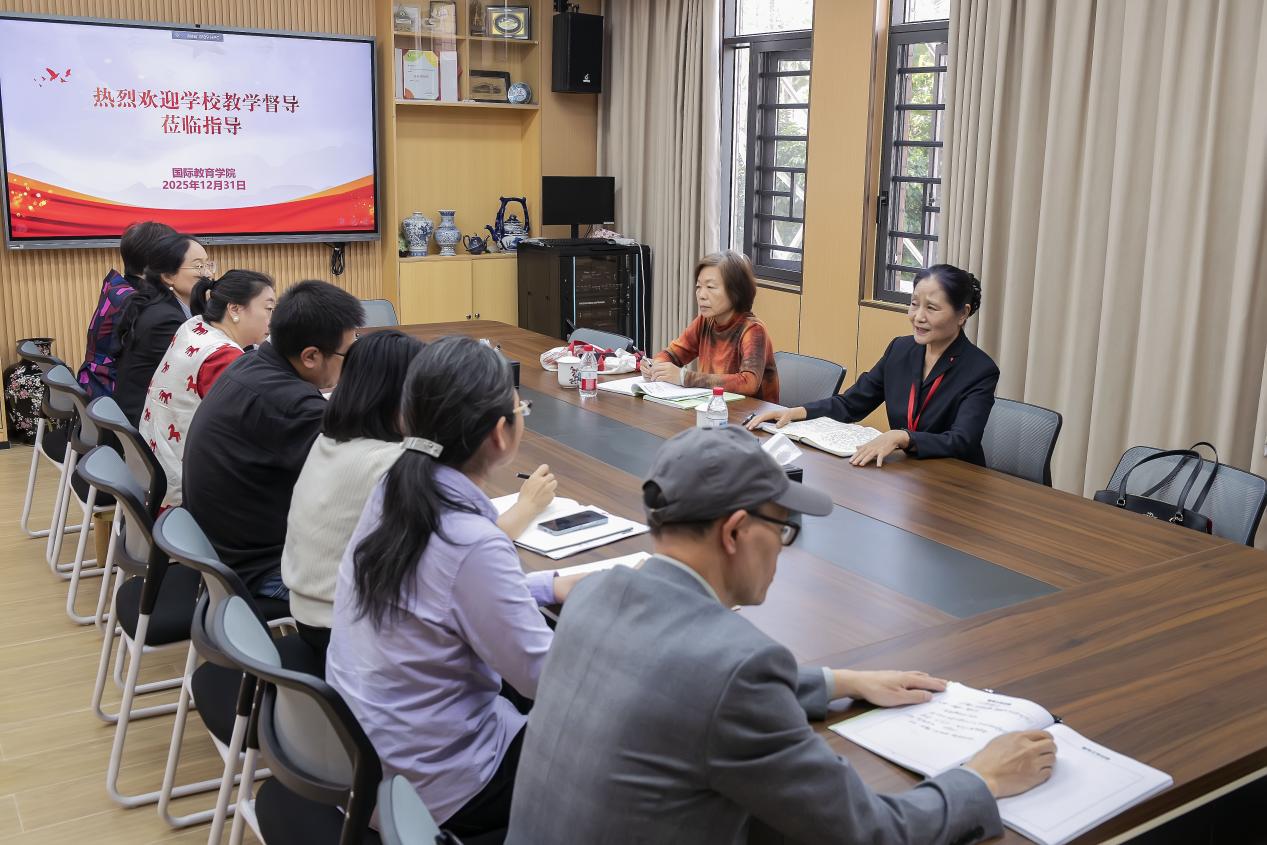 为精准研判教学现状,靶向破解教学难题,2025年12月31日下午,学校教学督导陈海燕教授和唐若玲教授深入国际教育学院,莅临教学督导反馈会,详细反馈了2025-2026学年第一学期国际教育学院本科教学督查情况。国际教育学院院长耿娟、党委书记吴辰、党委副书记符星、分管教学副院长张恒及学院教学督导组成员杨遗旗、张文香、王英等参会,共同聆听督导反馈教学巡察及指导情况,梳理问题、发现短板、讨论改进方案,全力推动学院教学质量再升级。